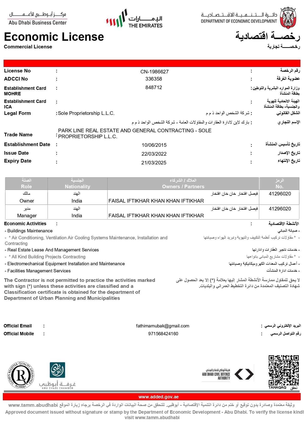 Parkline Real Estate General Contracting L.L.C and Developers (Investment & Management)